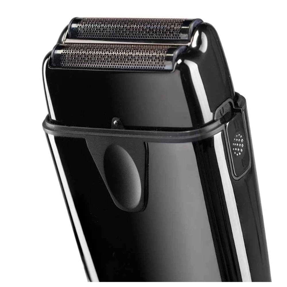 The UV-disinfecting metal double foil shaver is a heavy-duty dual foiler for precise, crisp fading, or close, smooth cleaning up of the hairline. With ultra‐fine black titanium foils for long-lasting smoothness. The UV-disinfecting light kills 99,9% of bacteria, providing you an unparalled hygienic shaving experience. The high-powered motor gives sustained performance, corded or cordless, with 5.5 hours use from a 4 hour fast charge. With a heavy-duty metal casing for hard-working durability.