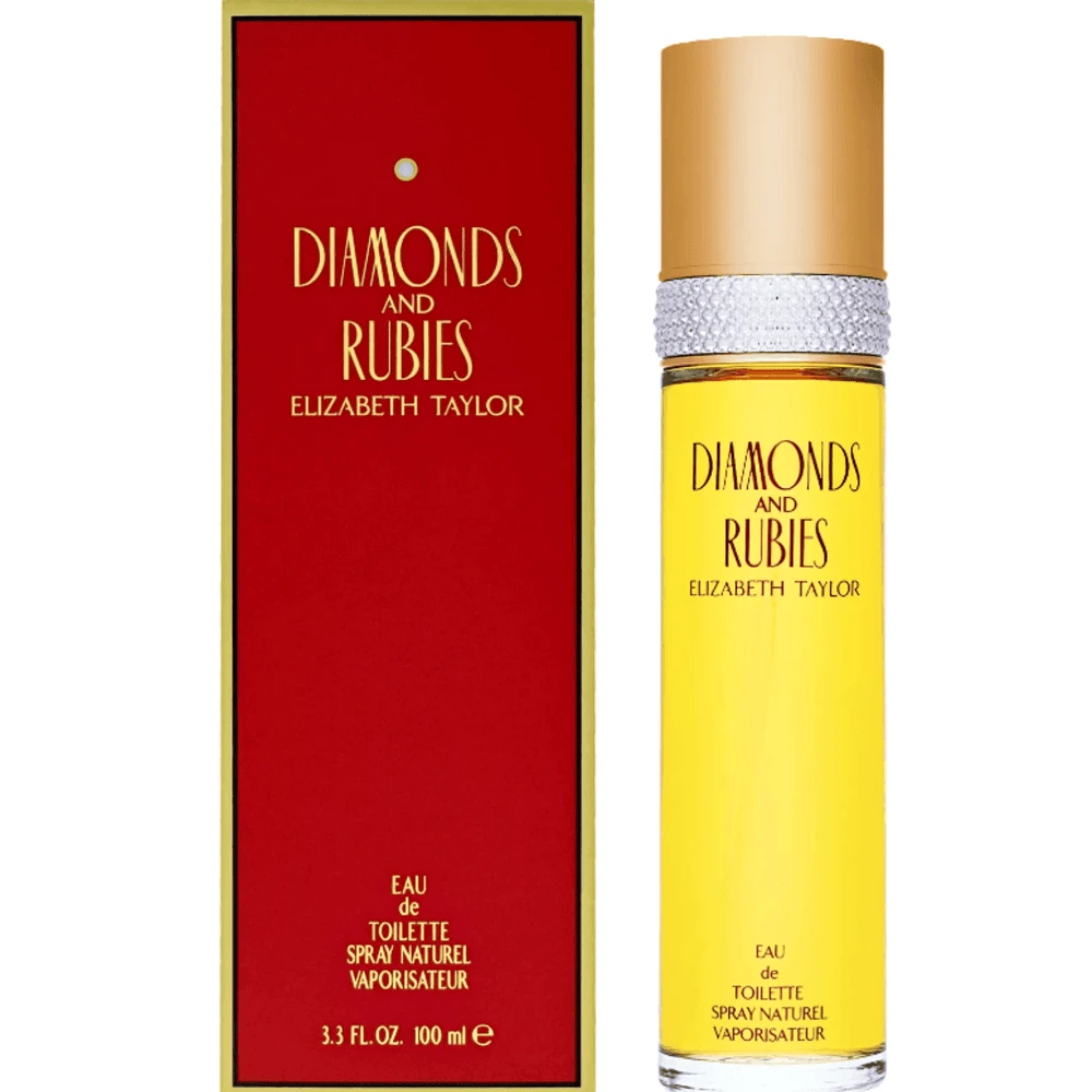 Diamonds & Rubies Perfume by Elizabeth Taylor, This feminine fragrance begins with powerful top notes from creamy, sweet peach and bitter almond tree, accented with the light, sweet aroma of cyclamen. The heart delivers floral notes with intense jasmine, the powdery influence of orchid, bright lily of the valley and a background from rose tones. Spiciness in the heart comes from the pungency of nutmeg and pepper, while coriander lends its woody feel. The base offers a powdery vanilla essence blended with the austerity of cedar, anchored by warm benzoin, deep amber and the lingering richness of sandalwood. The longevity is gauged between moderate and very long lasting, with sillage ranging from moderate to heavy.