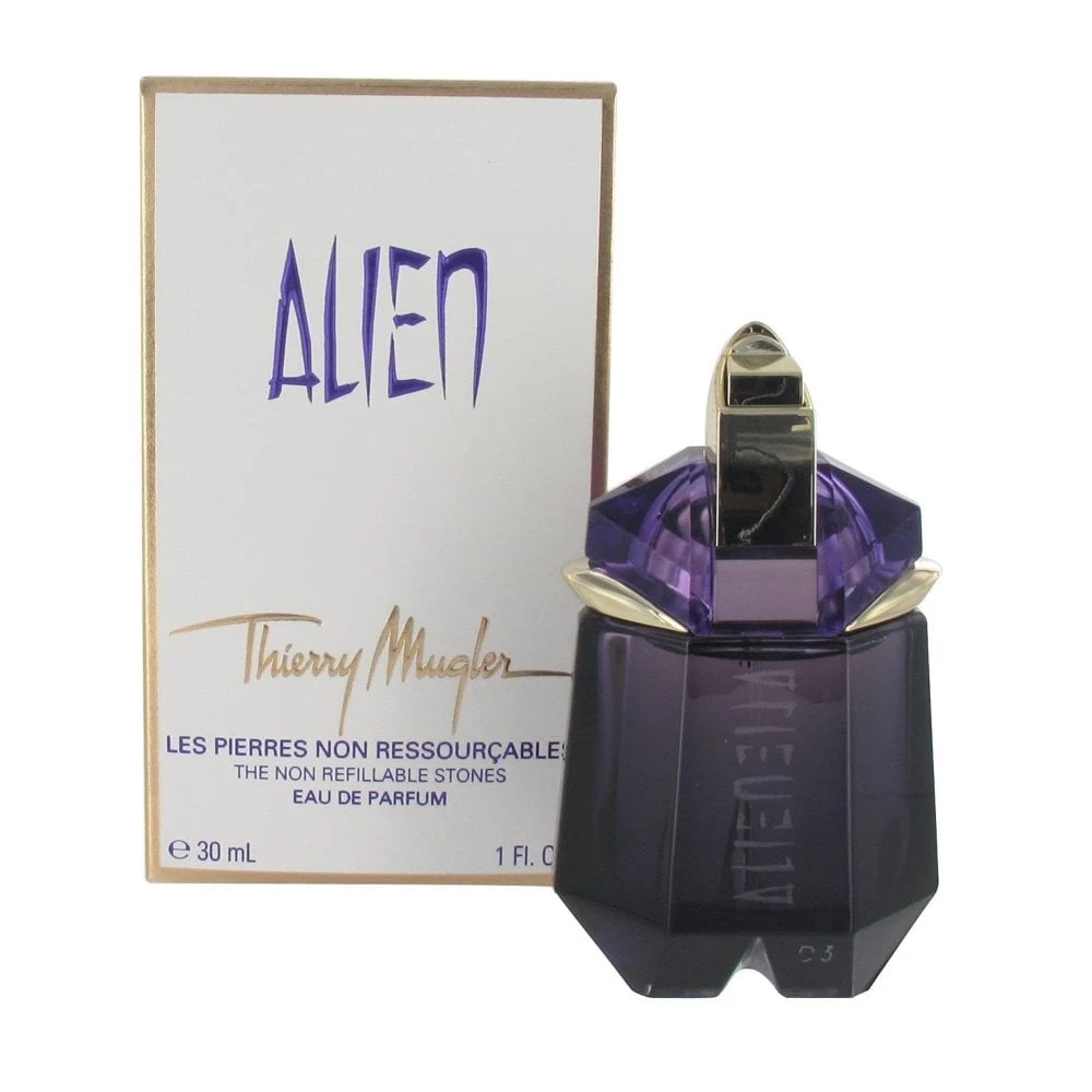 Thierry Mugler the maker of beauty classic Angel brings you Alien a fragrance which stands out from the crowd and isnt afraid to be different. The unique and distinctive woody amber solar floral fragrance consists of two powerful top notes. The woody note is distinctive mysterious and stimulates the imagination. Within this combination of luxurious unusual notes is a floral lightness of Jasmine Sambac a gentle yet powerful flower with delicate petals that blooms under the Indian sun and gives off a bewitching scent with a hint of green notes and orange blossom.