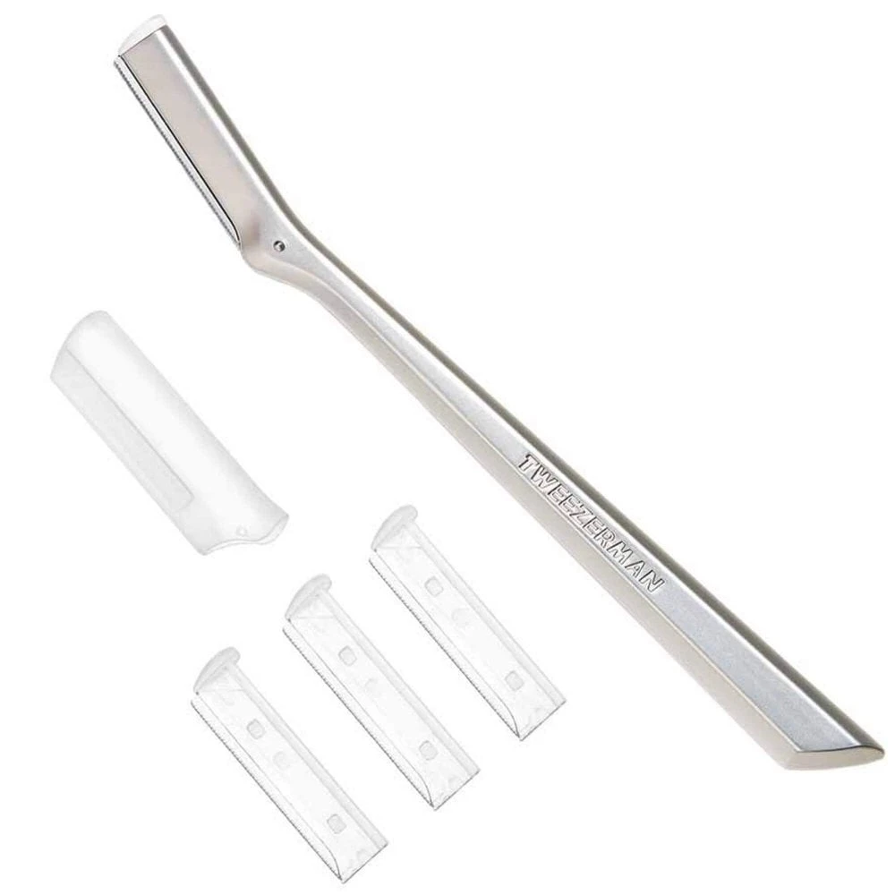 Premium in quality and superior in performance, Tweezerman’s Facial Razor / Dermaplaner provides easy removal of peach fuzz while gently exfoliating skin. Designed to be reusable with refillable blades and high-quality stainless steel made to last.
